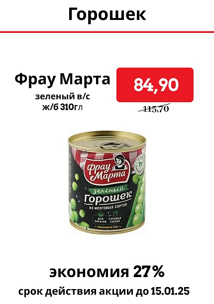 Горошек Фрау Марта зеленый в/с ж/б 310г