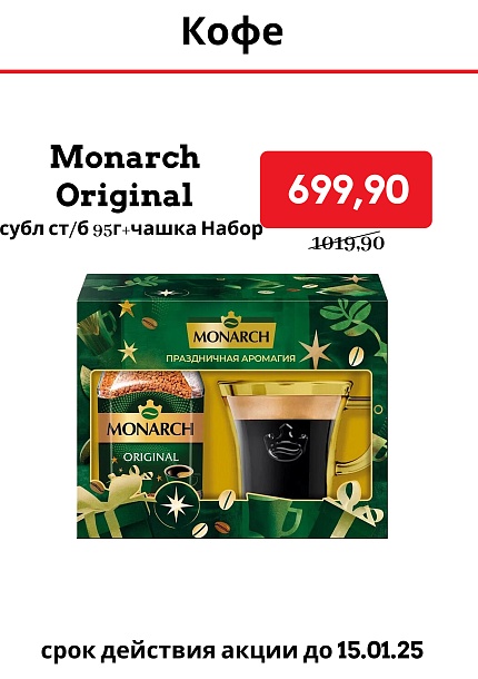 Кофе Monarch Original субл ст/б 95г+чашка Набор