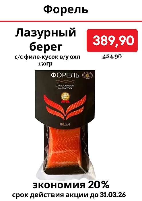 Форель Лазурный Берег с/с филе-кусок в/у охл 150гр