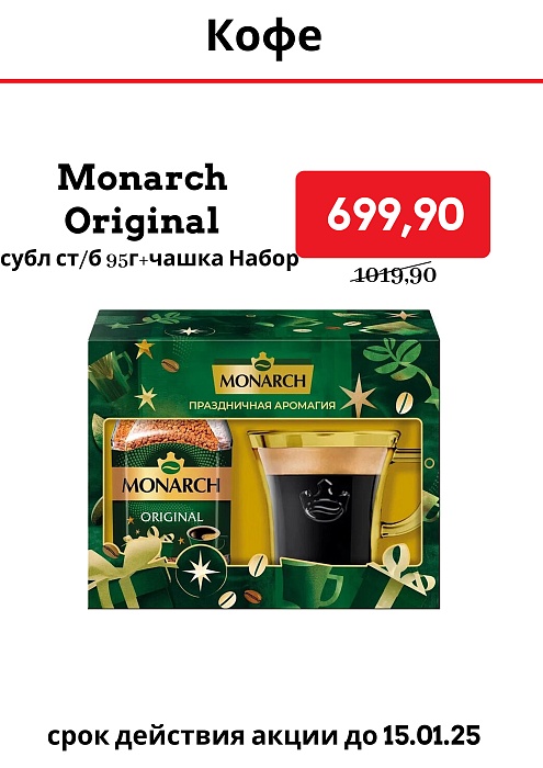Кофе Monarch Original субл ст/б 95г+чашка Набор
